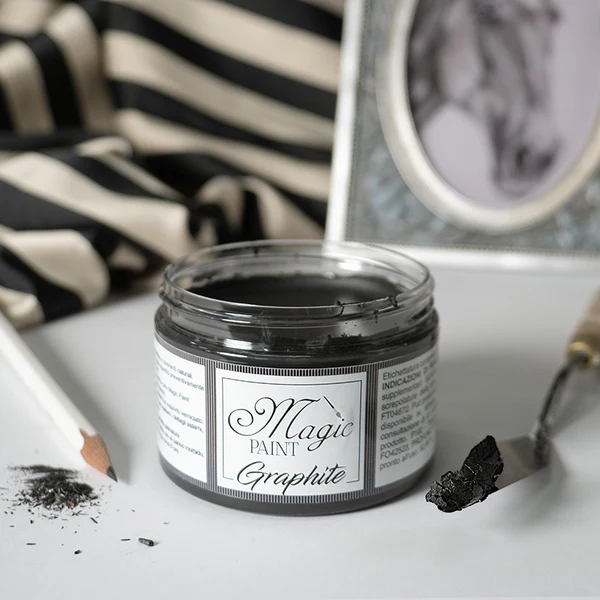 A Cera Preta Sólida Graphite Magic Paint proporciona um efeito grafite intenso e de alta cobertura. Perfeita para visuais industriais e modernos ou para criar contrastes marcantes.