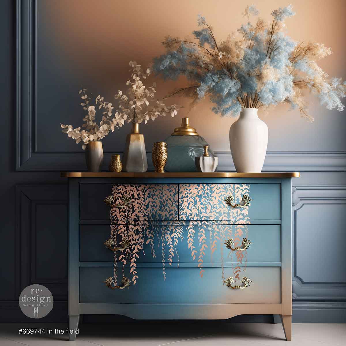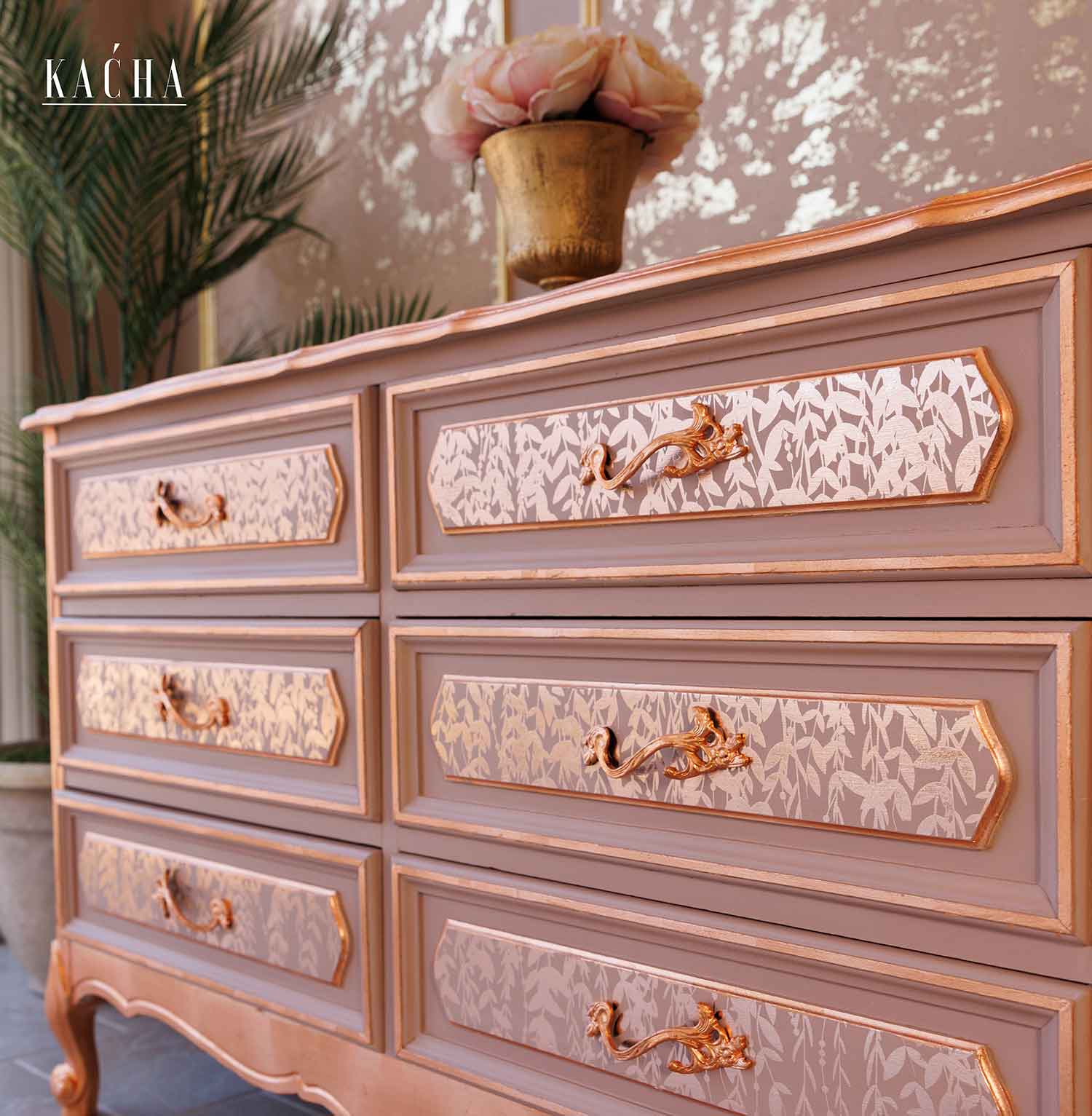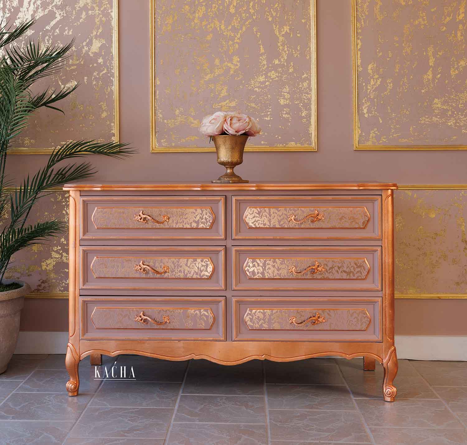 O decalque Kacha Decor Transfer® “In the Field” em folha de ouro rosa traz a beleza de um prado sereno para dentro da sua casa. Grama delicada e fina como um sussurro, e folhagem selvagem em um tom exuberante de ouro rosa criam uma atmosfera tranquila e sofisticada. Perfeito para adicionar um toque de elegância discreta, esses decalques transformam qualquer peça em um ponto focal de charme e estilo naturais.