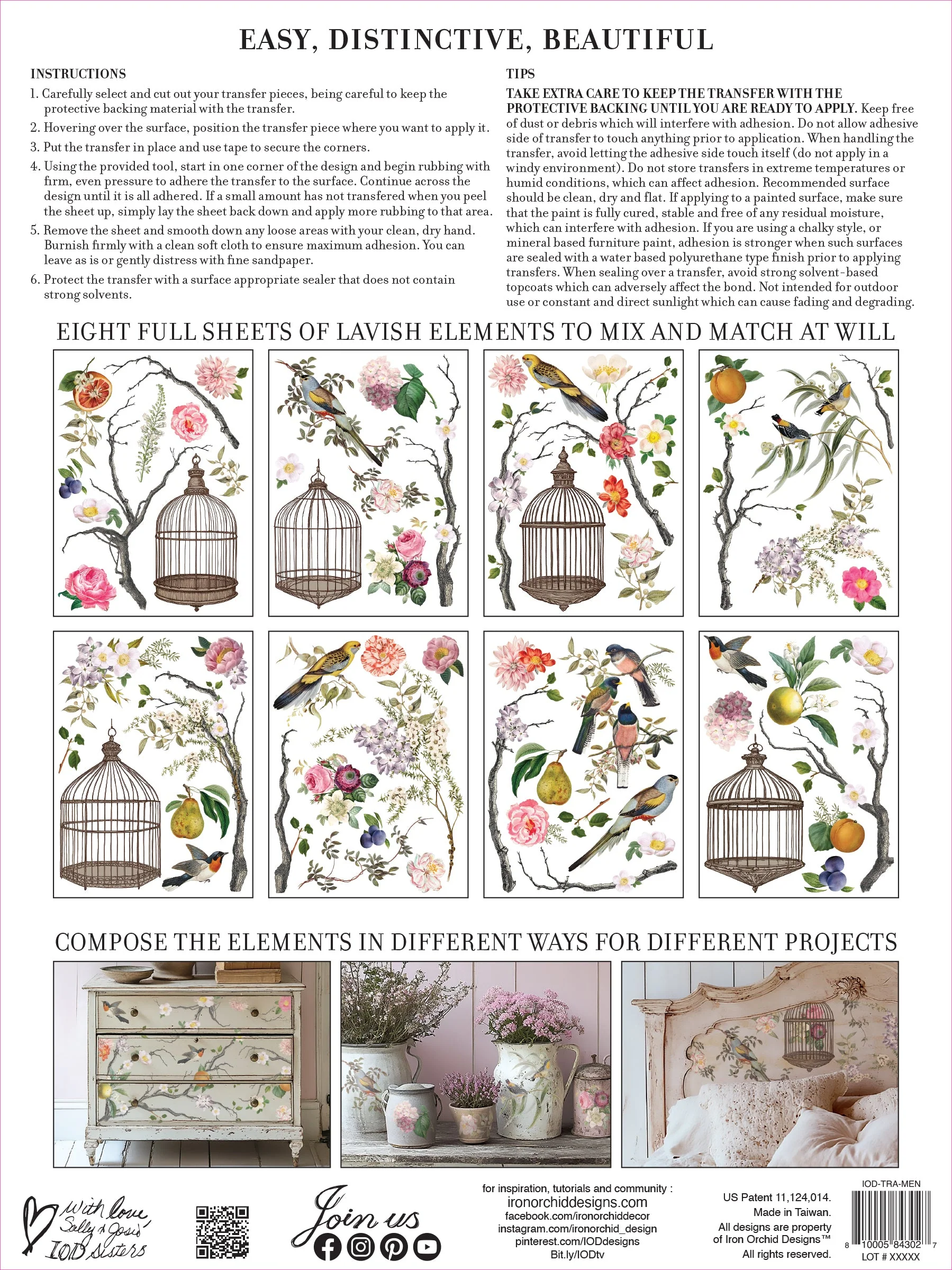 Combine o padrão Menagerie com o nosso carimbo Veranda, usando detalhes intrincados de bambu como um padrão de fundo completo. Imagine combinar o Menagerie com o nosso molde Trimmings, especificamente o friso de bambu, que criaria uma borda deslumbrante em peças de madeira IOD.